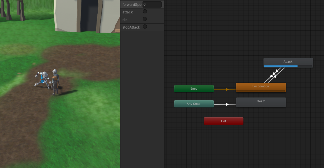 4) attack range에 들어가면 animation 을 trigger 해서 공격 실행 (+대미지 입히기)